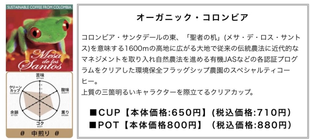 オーガニックコロンビア🇨🇴をポット(2杯分)¥750(税抜)