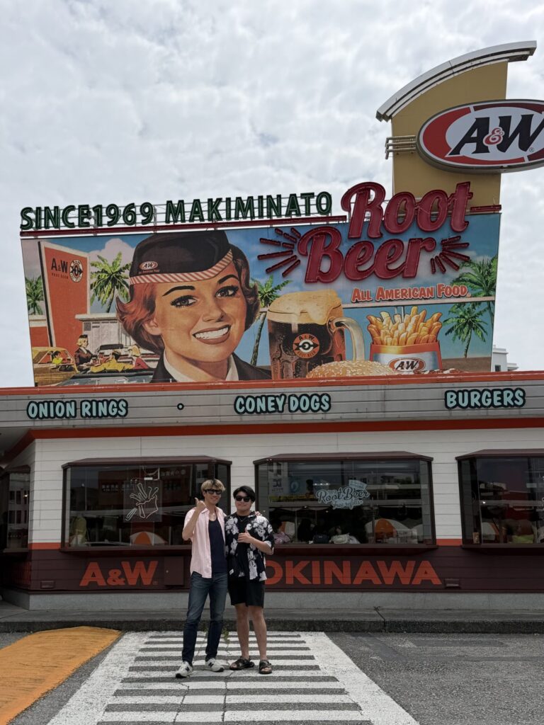 その後は、お昼ご飯を食べにA&Wへ。1番映えるとされる牧港店へ。案の定1時間くらいの列ができていて、写真だけ撮って他店舗で食べました。