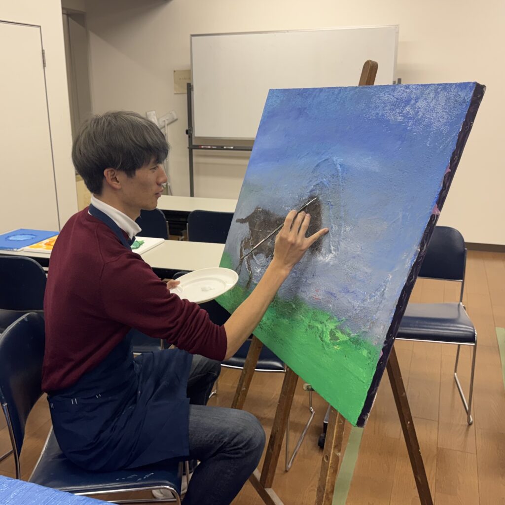 イーゼルを用いて描いているところをパシャリ