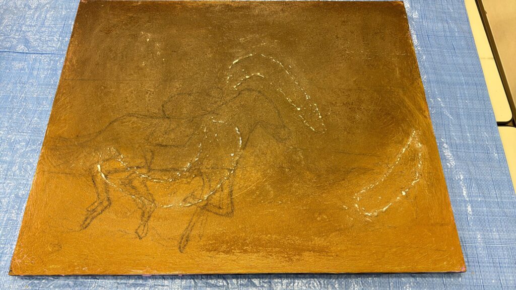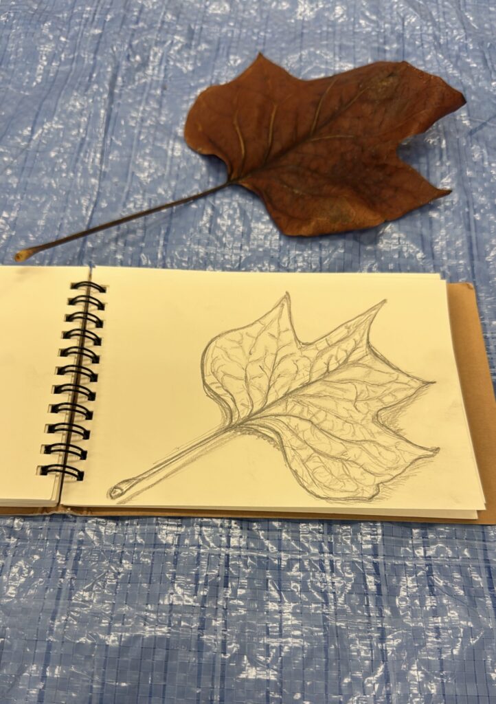 昼からアート教室へ行き、新たに制作中の馬の絵を少し進め、ゆりの木の葉のスケッチをしました。